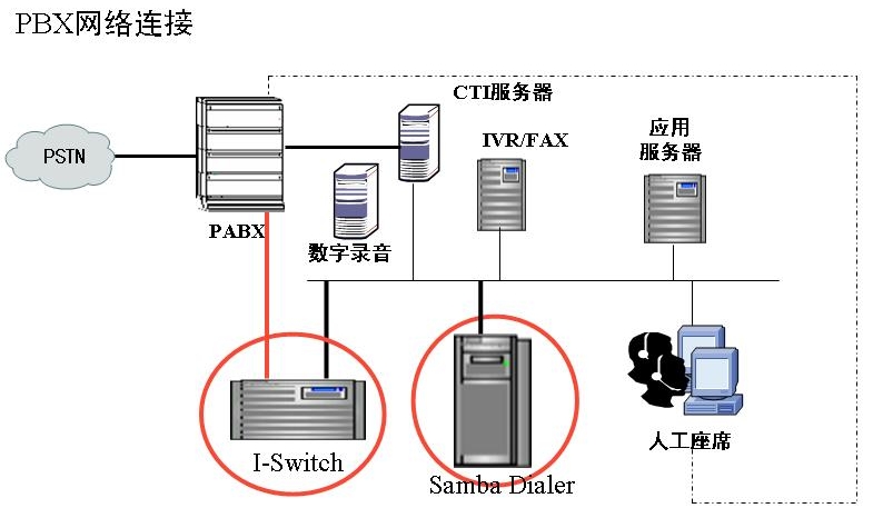 Samba Dialer和潤(rùn)迅通信哈里斯數(shù)字程控交換機(jī)利用ISDN PRI進(jìn)行匯接,共享現(xiàn)有話機(jī),大大保護(hù)了投資。Samba Dialer直接通過(guò)PRI進(jìn)行信令檢測(cè),不依賴程控交換機(jī)的CTI功能,這樣可以避免大量外撥電話對(duì)CTI資源的占用而影響呼入業(yè)務(wù)的運(yùn)作。另外,交換機(jī)的CTI接口一般不具備很高的穩(wěn)定性,Samba Dialer脫離CTI獨(dú)立運(yùn)行,也使自身不受CTI可靠性的影響。