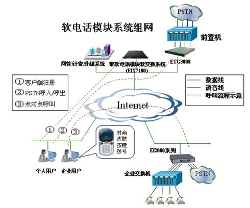 在PC上安裝SOFTEIA后,用戶使用耳機(jī)及麥克風(fēng),通過(guò)SOFTEIA進(jìn)行撥號(hào),即可進(jìn)行呼叫。除可以與傳統(tǒng)電話(例如手機(jī)、座機(jī)、小靈通等)進(jìn)行通信,還可以與其它SOFTEIA、EIA等進(jìn)行通信。