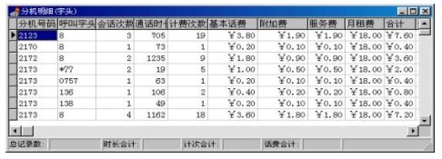 用戶可以撥打話費(fèi)查詢電話號(hào)碼,話費(fèi)查詢系統(tǒng)會(huì)提示用戶輸入查詢密碼,然后提示選擇余額查詢/時(shí)段查詢。用戶選擇時(shí)段查詢,查詢系統(tǒng)會(huì)提示用戶輸入查詢時(shí)段,然后自動(dòng)將該時(shí)段內(nèi)的話費(fèi)統(tǒng)計(jì)出來(lái),合成語(yǔ)音,報(bào)給用戶。時(shí)段話費(fèi)查詢必須與LANBIRD計(jì)費(fèi)/收費(fèi)系統(tǒng)配合使用,利用網(wǎng)絡(luò)共享分機(jī)話費(fèi)數(shù)據(jù)表,否則系統(tǒng)將得不到數(shù)據(jù)而無(wú)法工作。LANBIRD計(jì)費(fèi)/收費(fèi)系統(tǒng)可以與查詢繳系統(tǒng)無(wú)縫集成,不需任何人工操作。如果采用地三方的計(jì)費(fèi)軟件,則須用手轉(zhuǎn)換,或用我們的自動(dòng)轉(zhuǎn)換模塊,不過(guò)由于不同的計(jì)費(fèi)系統(tǒng),話費(fèi)存儲(chǔ)格式不同,自動(dòng)轉(zhuǎn)換模塊需要專門開(kāi)發(fā)。
