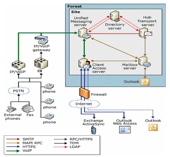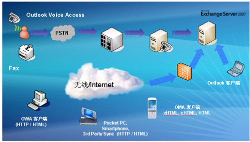 客戶端可以通過Outlook,Web,固話語音和手機(jī)接入,查看相關(guān)的郵件以及日程安排等信息。如下圖: