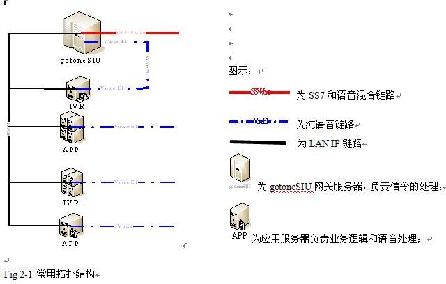 陽江電信跟系統(tǒng)集成商根據(jù)實際情況和專家評審團的評定最后選擇了高性價比的gotoneSIU PCCS6,2E1的SS7網(wǎng)關(guān)系統(tǒng),經(jīng)過我們工程師的指導(dǎo),3天內(nèi)系統(tǒng)便集成完成。系統(tǒng)采用了業(yè)界免費穩(wěn)定的Redhat Linux9.0作為操作系統(tǒng),IPC6102U工控機作為系統(tǒng)的計算平臺,采用7X24 小時不間斷運行設(shè)計思想。系統(tǒng)的拓?fù)浣Y(jié)構(gòu)如下: