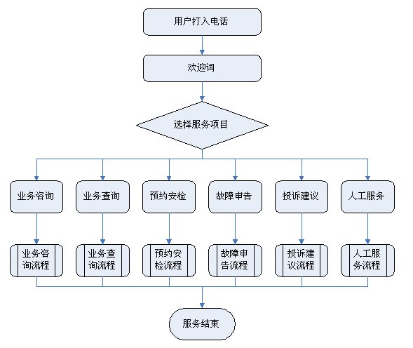 2)業(yè)務查詢:用戶可通過受理人員或自動語音應答系統(tǒng)根據(jù)用戶要求從數(shù)據(jù)庫查詢資料,然后通過語音方式播報或送到用戶指定傳真機或其他終端設備上。應考慮以后用web方式查詢氣費等數(shù)據(jù),以不動及主體設備方式平滑升級。