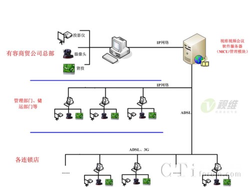 - 高性價比,1080P高清視頻會議系統(tǒng):充分利用有容商貿(mào)與各區(qū)域連鎖店現(xiàn)有的網(wǎng)絡(luò)資源和辦公設(shè)備,平民身價的視維高清視頻會議軟件系統(tǒng),以低廉的成本實現(xiàn)大規(guī)模的高清應(yīng)用。