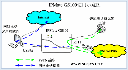- IPMate GS100可以實現(xiàn)Skype電話轉(zhuǎn)接到PSTN,以市話的費用呼叫IPMate GS100所在地區(qū)的任何固定電話或手機。