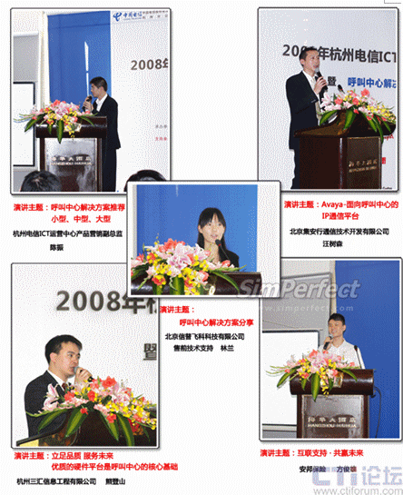 11月4日,北京信普飛科、上海羅盤、集安行、杭州三匯、杭州領先、思安華勝、七星藍圖、康達特等公司攜手 杭州電信 共同舉辦的2008杭州電信ICT運營中心技術交流會,暨呼叫中心解決方案推薦會在杭州海華大酒店如期舉行。