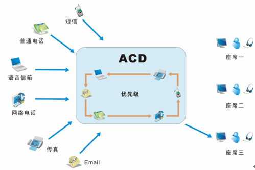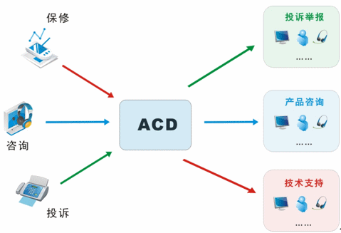 我們目前接入的媒體有很多,不再是傳統(tǒng)的單一電話接入方式,還包括網(wǎng)絡(luò)呼入、E-mail呼入,短信、留言等,所有的媒體接入都通過統(tǒng)一的排隊(duì)路由,以最優(yōu)化的策略分配給最適合的座席人員;并且,不同的媒體類型具有不同的優(yōu)先級,ACD(自動話務(wù)分配)根據(jù)優(yōu)先級和設(shè)定的排隊(duì)算法,自動實(shí)現(xiàn)媒體的統(tǒng)一智能路由。