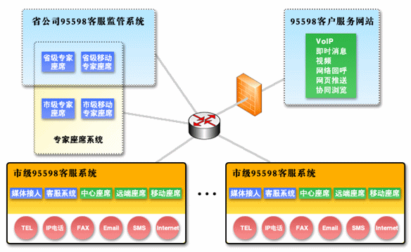在電力客戶服務(wù)中心系統(tǒng)解決方案中,我們采用了更加先進(jìn)的第四代呼叫中心系統(tǒng)作為客服系統(tǒng)的平臺?梢詫(shí)現(xiàn)的客戶聯(lián)絡(luò)方式已經(jīng)不僅僅局限于傳統(tǒng)的語音和傳真的呼叫形式,網(wǎng)絡(luò)電話、網(wǎng)絡(luò)傳真、Email、短消息、即時(shí)消息、互聯(lián)網(wǎng)應(yīng)用等都是與客戶聯(lián)絡(luò)的重要方式,涉及到的媒體載體也不僅是PSTN,還有基于VoIP技術(shù)的現(xiàn)代網(wǎng)絡(luò)、無線網(wǎng)絡(luò)等;也就是說第四代呼叫中心系統(tǒng)是一個(gè)融合網(wǎng)絡(luò)、語音、數(shù)據(jù)庫、視頻和安全技術(shù)的綜合信息服務(wù)平臺。整個(gè)95598電力客戶服務(wù)系統(tǒng)是由呼叫中心子系統(tǒng)和業(yè)務(wù)處理子系統(tǒng)共同構(gòu)成。