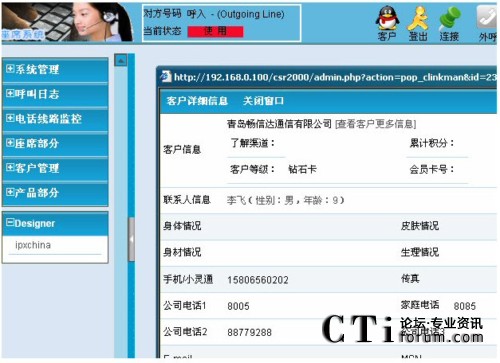 作為呼叫中心的核心功能,來電彈屏功能在客戶和服務(wù)代表之間建立了溝通的橋梁。當(dāng)電話接入客服代表電話振鈴的同時(shí),電腦屏幕會(huì)彈出客戶的相關(guān)資料。如果是新客戶,則彈出空白頁(yè)面,客服代表可以說歡迎的同時(shí)錄入客戶資料,以備客戶下次來電時(shí)查詢。當(dāng)客戶在網(wǎng)上選購(gòu)產(chǎn)品時(shí),有問題可以隨時(shí)打電話溝通,來時(shí)的同時(shí),座席電腦上彈出客戶已經(jīng)填寫的資料,座席對(duì)客戶的資料一目了然,提高了工作效率。來電彈屏的頁(yè)面可以根據(jù)用記要求定制。