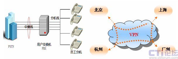 企業(yè)的傳統(tǒng)通信應用,在語音電話方面,主要是透過傳統(tǒng)PSTN,通過中繼線連接企業(yè)交換機。數(shù)據(jù)應用方面,分布在全國各個省市、自治區(qū)的分支機構主要通過Internet,以E-mail方式聯(lián)絡。