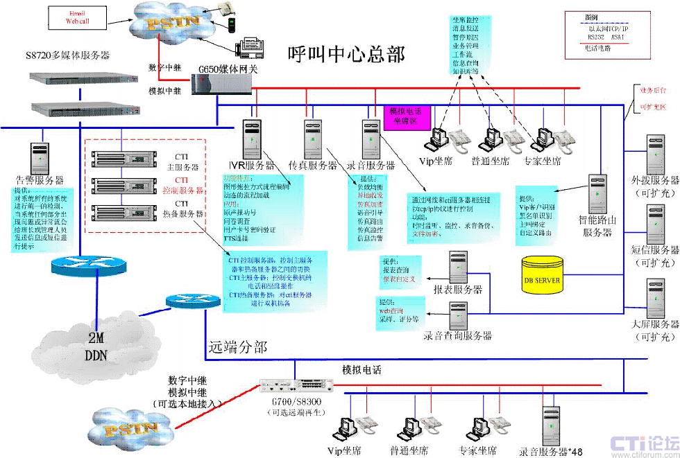 WILCOM CTI系統(tǒng)將CTI主流應(yīng)用帶進(jìn)了專業(yè)的呼叫中心。使得通過普通PC即可以完成自動撥號、會議電話等電話功能 ,并且與數(shù)據(jù)存儲主機(jī)及其客戶機(jī)相配合,提供消息管理。座席代表能夠迅速地用電腦處理呼叫并且使用應(yīng)用程序進(jìn)行自動撥號。系統(tǒng)還可以利用主叫信息以及呼叫提示位進(jìn)行實(shí)時(shí)的檢索和操作并將數(shù)據(jù)顯示給坐席電腦。系統(tǒng)還可以根據(jù)一定條件的計(jì)劃安排(如市場調(diào)查、客戶要求的回叫等),進(jìn)行呼出管理,完成預(yù)覽或預(yù)測呼出,以提高服務(wù)的效率和水平。 高可靠的CTI雙機(jī)熱備方案
