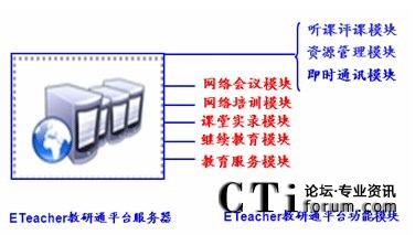 紅杉樹的“教研通”產(chǎn)品是紅杉樹根據(jù)客戶的具體情況,在自身產(chǎn)品“紅杉通”的基礎(chǔ)上,定制擴(kuò)展而來,是一套適合于教育城域網(wǎng)的,集即時(shí)通訊、網(wǎng)絡(luò)會議、網(wǎng)絡(luò)培訓(xùn)、課堂實(shí)錄、聽課評課、資源管理、繼續(xù)教育、教育服務(wù)等功能于一體的綜合性教育應(yīng)用系統(tǒng)(包括服務(wù)器及軟件平臺)。