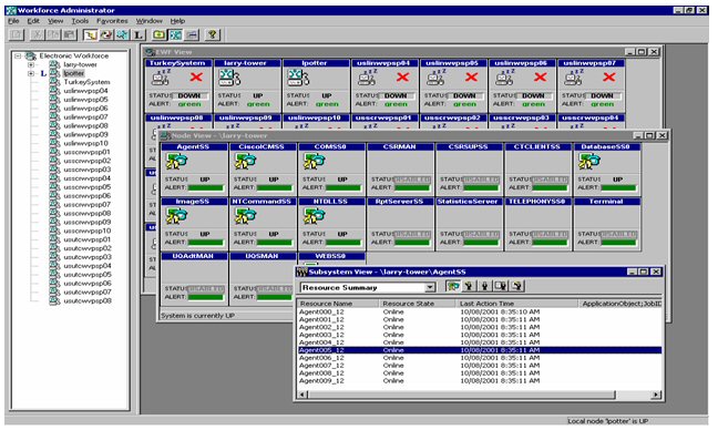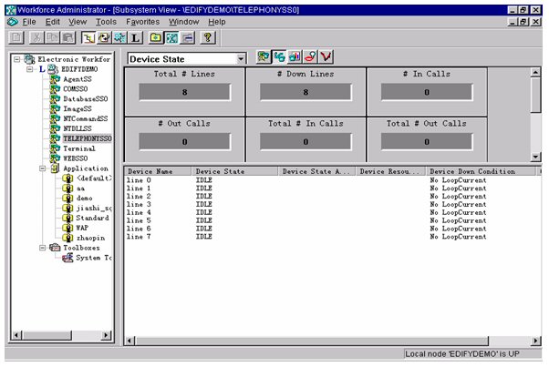 EDIFY提供界面友好的圖形化管理監(jiān)控平臺Workforce Administrator,可以對語音端口、傳真端口、TTS端口、ASR端口、數(shù)據(jù)庫應(yīng)用、DLL資源占用、性能分析等多種信息進行實時監(jiān)控。