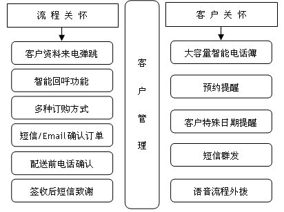 可與企業(yè)既有的800或400電話相結(jié)合,包含1至16個(gè)客服人員坐席設(shè)置,主要處理實(shí)時(shí)的產(chǎn)品售前售后咨詢、電話訂單受理等呼入類業(yè)務(wù),也能滿足以外撥為主的客戶關(guān)懷需求;同時(shí),客服人員能夠通過(guò)系統(tǒng)隨時(shí)了解各種商品庫(kù)存情況,以便對(duì)網(wǎng)上交易提供及時(shí)有效的服務(wù)。來(lái)電彈跳客戶資料中必須顯示出客戶的歷史消費(fèi)詳細(xì)信息,以及正在進(jìn)行中的交易詳情。