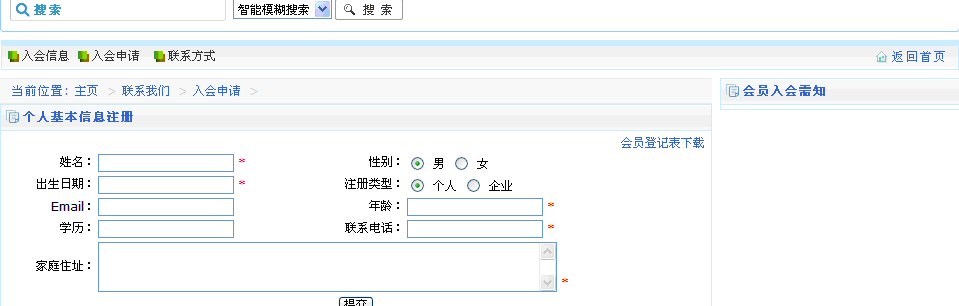 個人會員申請入會界面更加友好,填寫資料更加方便。