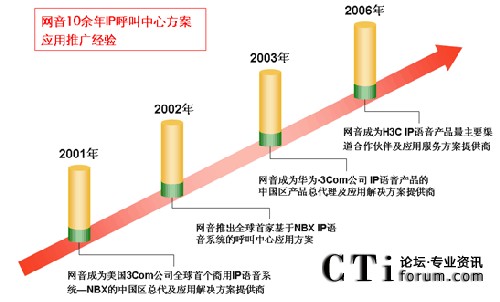 2001年,網(wǎng)音成為美國(guó)3Com公司全球首個(gè)商用IP語(yǔ)音系統(tǒng)—NBX的中國(guó)區(qū)總代及應(yīng)用解決方案提供商。