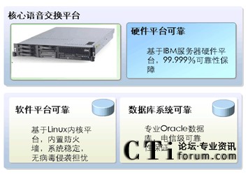 “網(wǎng)音托管”的核心IP語(yǔ)音平臺(tái)采用采用全球頂級(jí)的 VCX V7000系列IP語(yǔ)音交換平臺(tái),基于IBM服務(wù)器硬件平臺(tái)、專業(yè)Oracle數(shù)據(jù)庫(kù)、基于Linux內(nèi)核平臺(tái),內(nèi)置防火墻,提供電信級(jí)可靠保證。同時(shí)還擁有一套引以自豪的應(yīng)用軟件開發(fā)管理規(guī)范。各部分模塊都是經(jīng)過多年應(yīng)用的成熟產(chǎn)品,充分保證了系統(tǒng)的穩(wěn)定性和可靠性。
