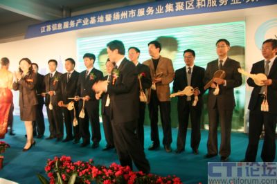 4月21日,江蘇信息服務產業(yè)基地暨揚州市服務業(yè)集聚區(qū)和服務業(yè)項目推介洽談會在江蘇信息服務產業(yè)基地(揚州)隆重召開,省信息產業(yè)廳副廳長龔懷進、揚州市委常委、常務副市長張京霞為省信息安全技術中心揭牌,中國網(wǎng)通集團公司總工程師滕勇,神州數(shù)碼高級副總裁陳勇,上海萬得信息股份董事長陸風等數(shù)十位集團公司老總現(xiàn)場祝賀,同時IBM、AVAYA、優(yōu)勝資訊、神州數(shù)碼等60多家企業(yè)現(xiàn)場簽定了投資合作協(xié)議,而華潤通信、中國電信、酒店無憂、漢世紀等10家企業(yè)則從廣陵區(qū)委書記孔令俊手中接過了入駐金鑰匙,成為首批入駐江蘇信息服務產業(yè)基地的企業(yè),至此江蘇信息服務產業(yè)基地迎來首發(fā)項目招商的“開門紅”,江蘇信息服務產業(yè)基地也因此被業(yè)界冠以中國首家專業(yè)定位信息呼叫和數(shù)據(jù)處理產業(yè)的“中國聲谷”的美譽。 “江蘇信息服務產業(yè)基地(揚州)”位于廣陵新城內,為省信息產業(yè)廳與揚州市政府聯(lián)手打造的中國首家專業(yè)定位于呼叫信息和數(shù)據(jù)處理產業(yè)的省級信息服務業(yè)基地,占地2.52平方公里,總投資50億元,處于揚州ECBD核心區(qū)域,交通便捷,區(qū)位優(yōu)勢獨特,生態(tài)環(huán)境優(yōu)美。基地按照“產業(yè)社區(qū)”的標準和“商務公園”的理念規(guī)劃建設,重點發(fā)展信息服務產業(yè)及具有揚州特色的城市信息化應用軟件和嵌入式軟件產業(yè),立足長三角、面向全國、服務世界,逐步發(fā)展成為全國乃至世界呼叫中心產業(yè)最佳實踐基地、全國生產性服務業(yè)的標桿示范基地及呼叫中心人才培訓與派遣基地。