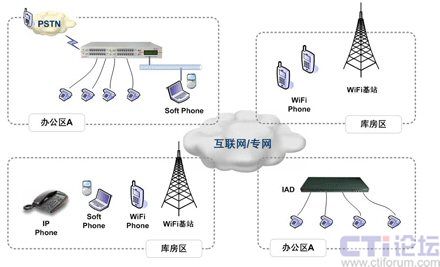 隨著北京西南物流中心業(yè)務(wù)的不斷發(fā)展,其庫區(qū)在不斷落成,倉儲(chǔ)面積仍不斷擴(kuò)大。由于各個(gè)庫區(qū)及辦公樓都具有無線Mesh網(wǎng)絡(luò)覆蓋,西南物流中心在現(xiàn)有無線網(wǎng)絡(luò)基礎(chǔ)上陸續(xù)開展企業(yè)信息化業(yè)務(wù)。由于各個(gè)庫房與辦公樓之間都有一定距離,因?yàn)樵谥行牡耐ㄐ懦杀緲?gòu)成中,內(nèi)部業(yè)務(wù)部門之間的溝通占據(jù)了絕對(duì)的比重,經(jīng)常居高不下的通信成本嚴(yán)重制約了北京西南物流中心業(yè)務(wù)的發(fā)展,于是,現(xiàn)實(shí)的溝通需求與高昂的通信成本之間的矛盾開始凸現(xiàn),內(nèi)部語音通信就成為了西南物流中心需要解決的首要任務(wù)之一。
