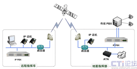 在有關(guān)部隊(duì)的應(yīng)用案例中,有兩方面比較常見,應(yīng)用也比較廣泛。首先是借助衛(wèi)星的遠(yuǎn)程指揮通訊,我們?yōu)榈孛鏅C(jī)關(guān)與遠(yuǎn)程指揮車之間架設(shè)起溝通的橋梁,除了電話、傳真等基本業(yè)務(wù),還通過IP-PBX系統(tǒng)提供了多方會議、語音留言、熱線電話等擴(kuò)展業(yè)務(wù),在即使是雙星四跳的高延時環(huán)境下建立起穩(wěn)定的語音通信,保障了部隊(duì)指揮的有效下達(dá)。