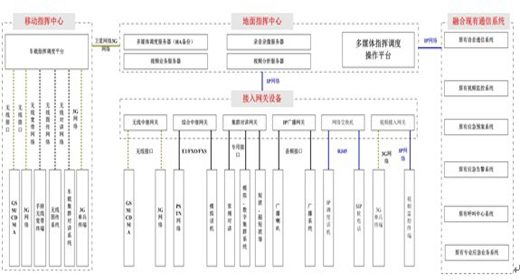 各個(gè)部門除了各自去處理相應(yīng)職能的問題,還需要接受政府相關(guān)單位的整體指揮調(diào)度,并回傳相應(yīng)的信息。這就需要一個(gè)容納和對(duì)接軟硬件系統(tǒng)、網(wǎng)絡(luò)系統(tǒng)、各種對(duì)講頻段、不同集群系統(tǒng)、不同標(biāo)準(zhǔn)的通信信號(hào)的智能化的融合通信應(yīng)急平臺(tái)。
