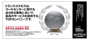 作為信息處理外包產(chǎn)業(yè)的先驅(qū),transcosmos公司于1966年正式開(kāi)始了自己的業(yè)務(wù)。從此以后,我們?nèi)诤喜⑤敵鋈瞬排c技術(shù),提供高附加值的外包服務(wù),致力于增強(qiáng)客戶公司的競(jìng)爭(zhēng)力,F(xiàn)已拓展到12000多人的規(guī)模,是日本最大和最著名的外包客戶互動(dòng)服務(wù)供應(yīng)商之一。目前在專業(yè)技術(shù)支持領(lǐng)域?yàn)榱腥毡镜谝弧?br />