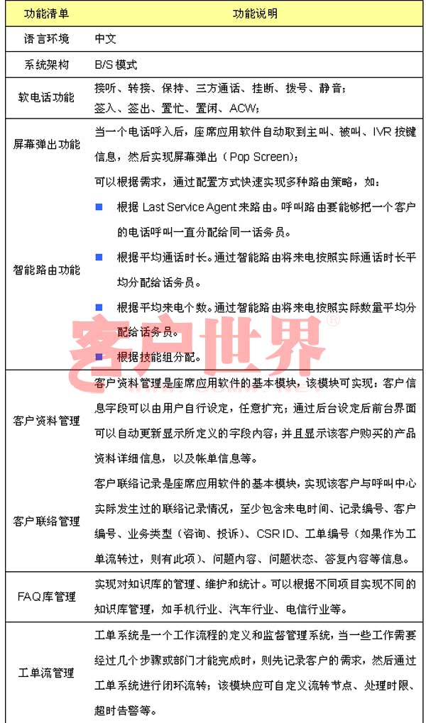 呼叫中心是企業(yè)和客戶(hù)互動(dòng)的溝通平臺(tái),要真正有效管理客戶(hù)服務(wù),優(yōu)化客戶(hù)服務(wù)處理流程,座席應(yīng)用軟件是呼叫中心建設(shè)的關(guān)鍵,座席應(yīng)用軟件與企業(yè)后臺(tái)各個(gè)業(yè)務(wù)系統(tǒng)有機(jī)結(jié)合,處理包括業(yè)務(wù)咨詢(xún)、信息查詢(xún)、投訴建議、業(yè)務(wù)受理等呼入業(yè)務(wù),以及客戶(hù)回訪(fǎng)、滿(mǎn)意度調(diào)查、電話(huà)營(yíng)銷(xiāo)和派工等呼出業(yè)務(wù)。