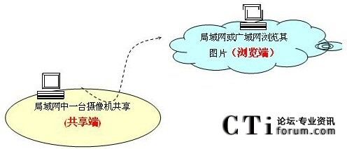 即局域網(wǎng)中任意一臺(tái)客戶端把攝像機(jī)設(shè)為共享,其他客戶端都可以查看這臺(tái)攝像機(jī)的內(nèi)容。