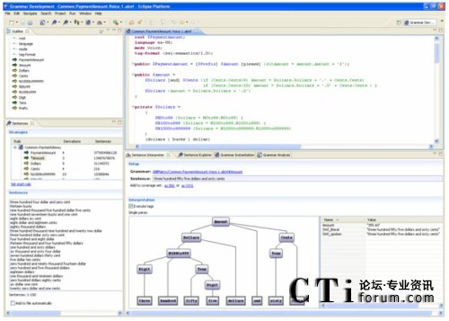 這里強(qiáng)調(diào)的Eclipse插件,除了本身作為優(yōu)秀工具,還提供了附加于Eclipse工作臺(tái)內(nèi)的順暢互操作性:你可以一邊看著對(duì)應(yīng)呼叫者輸入的對(duì)話流程,一邊檢查和完成語音識(shí)別語法;你也可以一邊構(gòu)建連接后臺(tái)的Web服務(wù)代碼,一邊通過簡(jiǎn)單地拖放來調(diào)整應(yīng)用邏輯。開發(fā)者首次擁有了對(duì)所有應(yīng)用方面的同時(shí)控制,無須在不同IDE之間進(jìn)行切換,或者在選擇單一環(huán)境時(shí)在特性上的折衷。