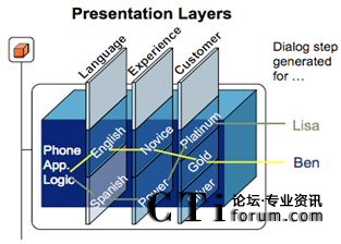而統(tǒng)一部署特性則在語(yǔ)音和移動(dòng)互聯(lián)網(wǎng)兩種訪問(wèn)渠道上保證了這種操作界面的一致,如圖: