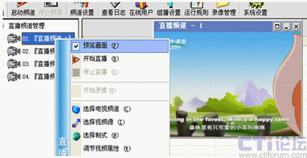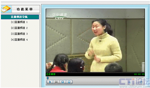 先在直播系統(tǒng)里啟動設(shè)置好的01號頻道,其他教師就可以在各自辦公室通過計(jì)算機(jī)網(wǎng)絡(luò)觀看遠(yuǎn)教節(jié)目,不需淘神費(fèi)力地到專門的接收室了。如下圖: