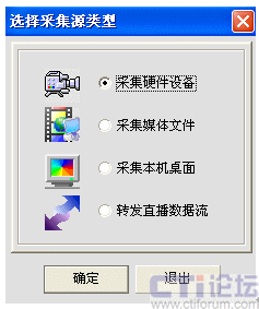 我們是利用電視卡來進(jìn)行遠(yuǎn)教衛(wèi)星電視節(jié)目的校園網(wǎng)絡(luò)實(shí)時(shí)直播,因此選擇“采集硬件設(shè)備”項(xiàng),進(jìn)入硬件設(shè)置,如下圖: