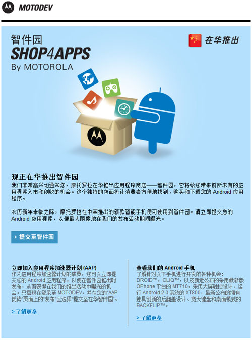 | 摩托羅拉將在中國(guó)發(fā)布應(yīng)用商店 稱不受谷歌影響 2010-01-22 |