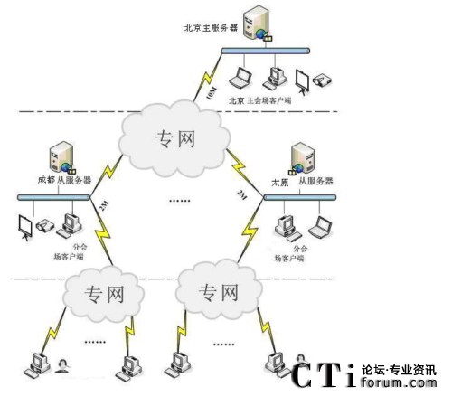 根據(jù)北京正大通力鋼管銷售有限公司對(duì)本系統(tǒng)的建設(shè)需要,CNKaran采用DX4000統(tǒng)辦公系統(tǒng)建設(shè)本期工程。傳輸網(wǎng)絡(luò)采用10M專線。整個(gè)系統(tǒng)由控制中心、北京正大通力鋼管銷售有限公司主會(huì)場(chǎng)和7個(gè)省市分會(huì)場(chǎng)組成,在控制中心配置服務(wù)器、投影儀和高清電視機(jī),實(shí)現(xiàn)視頻多輸出源的顯示。通過(guò)網(wǎng)絡(luò)管理部門對(duì)系統(tǒng)實(shí)行設(shè)備的統(tǒng)一管理和會(huì)議資源的統(tǒng)一調(diào)度,會(huì)議中心配置切換視頻輸出單元,通過(guò)投影儀、液晶電視實(shí)時(shí)監(jiān)看7個(gè)省市分會(huì)場(chǎng)情況,北京正大通力鋼管銷售有限公司和7個(gè)省市分會(huì)場(chǎng)同時(shí)訪問(wèn)控制中心的服務(wù)器,各分會(huì)場(chǎng)配置一套音視頻的輸入/輸出設(shè)備,7個(gè)省市分會(huì)場(chǎng)分別采用1M、2
