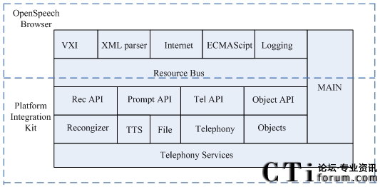 3.Telephony Interface:提供呼叫控制服務(wù),包括發(fā)送語(yǔ)音平臺(tái)的時(shí)間、轉(zhuǎn)接和掛斷電話。OpenSpeech Browser