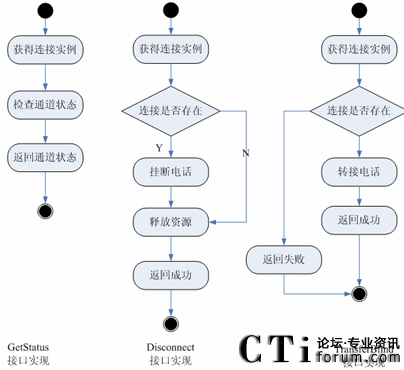 對(duì)于電話接口,需要實(shí)現(xiàn)的方法有GetStatus、Disconnect、TransferBlind,而TransferBridge指的是通過(guò)橋接的方式去轉(zhuǎn)接。首先,他需要平臺(tái)的支持,其次還要進(jìn)行大量的配置,同時(shí)占有很多的資源,非常的不實(shí)用。對(duì)于IVR系統(tǒng)來(lái)說(shuō),不需要這么復(fù)雜的操作。對(duì)于大型的呼叫中心,IVR系統(tǒng)只是前置于整個(gè)呼叫平臺(tái),更多的話路操作還需要交給CTI系統(tǒng)去完成。