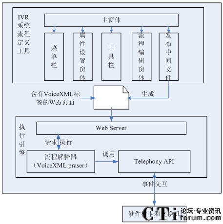 IVR系統(tǒng)執(zhí)行引擎作為IVR系統(tǒng)的核心,是整個系統(tǒng)的控制中樞。它所完成的功能是對IVR系統(tǒng)業(yè)務流程的解釋和驅動。