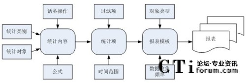 模板的劃分用來簡化了報表的復(fù)雜性。根據(jù)這些關(guān)鍵性模板,以公正的最重要的呼叫中心的統(tǒng)計資料過濾關(guān)鍵性數(shù)據(jù),然后以各種各樣的可視化顯示技術(shù)來展示報表數(shù)據(jù)。