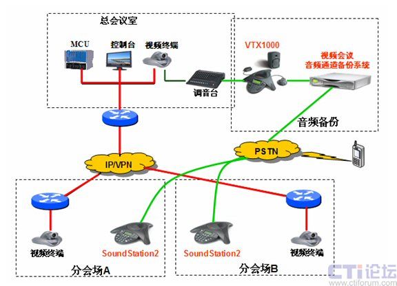 為此Polycom專門為紫金礦業(yè)定制了視頻會議系統(tǒng)的備份保障系統(tǒng),-----基于傳統(tǒng)公共交換電話網(wǎng)(PSTN)的音頻會議系統(tǒng):雙網(wǎng)雙設(shè)備配置,能迅速應(yīng)變網(wǎng)絡(luò)、設(shè)備的突發(fā)狀況,同時系統(tǒng)還擁有協(xié)助會議的便捷豐富的通知和交互功能。進一步提高遠程會議的完整性、可靠性。