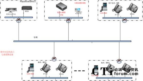 通過網(wǎng)絡(luò)還可以將系統(tǒng)與現(xiàn)有高清視頻會(huì)議系統(tǒng)進(jìn)行連接,在VVX1500話機(jī)之間實(shí)現(xiàn)單點(diǎn)視頻通信的基礎(chǔ)上,實(shí)現(xiàn)VVX1500的多點(diǎn)通訊以及和視頻會(huì)議終端之間的點(diǎn)對(duì)點(diǎn)視頻通信。同時(shí),領(lǐng)導(dǎo)也可以通過MCU加入到視頻會(huì)議中實(shí)現(xiàn)多方視頻會(huì)議,這樣就可以實(shí)現(xiàn)領(lǐng)導(dǎo)在辦公室參加視頻會(huì)議,而不用每次去會(huì)議室開會(huì)。