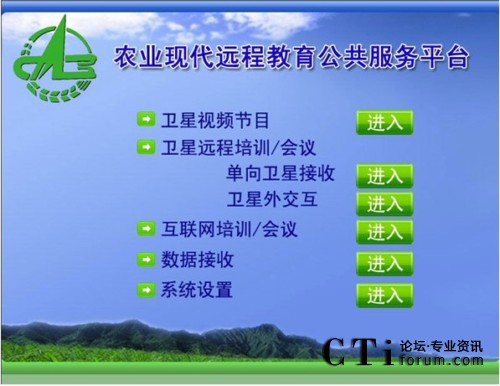 農(nóng)業(yè)現(xiàn)代遠(yuǎn)程教育平臺將先進(jìn)的多媒體寬帶DVB衛(wèi)星通信系統(tǒng)和全面的網(wǎng)絡(luò)遠(yuǎn)程教育培訓(xùn)/會議系統(tǒng),天(衛(wèi)星網(wǎng))地(互聯(lián)網(wǎng))合一,集成廣播、電視和網(wǎng)絡(luò)的功能,形成了廣覆蓋、大容量、多功能、低成本、快捷高效的遠(yuǎn)程教育培訓(xùn)網(wǎng)絡(luò)、技術(shù)培訓(xùn)資源傳輸通道和網(wǎng)絡(luò)視頻會議系統(tǒng),是面向“三農(nóng)”開展多形式多層次現(xiàn)代遠(yuǎn)程教育培訓(xùn)、科學(xué)普及、技術(shù)推廣和信息傳播的公共服務(wù)平臺。同時,該平臺也是首個將視頻會議/培訓(xùn)接入衛(wèi)星網(wǎng)絡(luò)的系統(tǒng),將遠(yuǎn)程視頻會議帶入了新的通訊領(lǐng)域,也為遠(yuǎn)程視頻會議的運(yùn)用開創(chuàng)了一片新的天地。