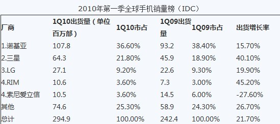 RIM替代Moto進入前五是全球手機版圖的重要變化。事實上自2005年第二季度索尼愛立信替代明基西門子進入前五以來,這五大廠商的名單就再也沒有變化過。RIM進入前五的事實證明了智能手機市場的巨大潛力,而摩托羅拉近期也在試圖通過一系列Android機型重現(xiàn)昔日榮光。