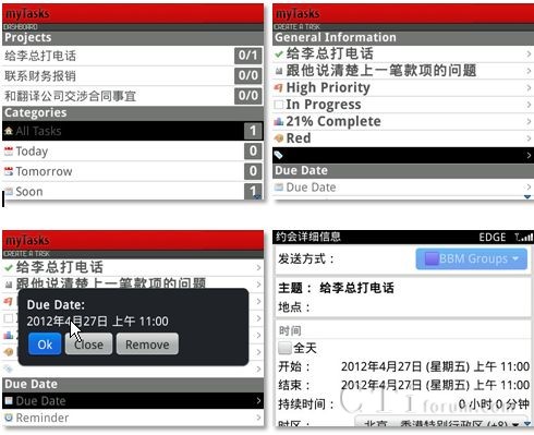 CTI論壇(ctiforum)4月26日消息(記者 歐陽): 再過幾天就是五一勞動節(jié)小長假啦!節(jié)前的最后幾天相信大家都在快馬加鞭想把手頭上的工作盡快處理完畢,好能過個安心的節(jié)日假期。我們也特別為大家搜集了黑莓智能手機上能夠在效率方面助大家一臂之力的幾款應(yīng)用,希望它們可以在工作生活中為諸位帶來切實有效的幫助!