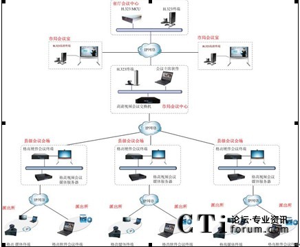 公安視頻會議系統(tǒng)建設主要依托現(xiàn)有的寬帶IP網(wǎng),建設從市局到各縣區(qū)分局及各鄉(xiāng)鎮(zhèn)派出所之間的交互式視頻會議系統(tǒng),最終建成的系統(tǒng)要實現(xiàn)全省公安系統(tǒng)每個點都能互通。