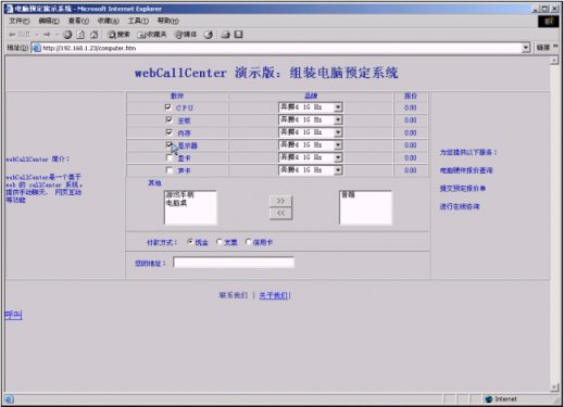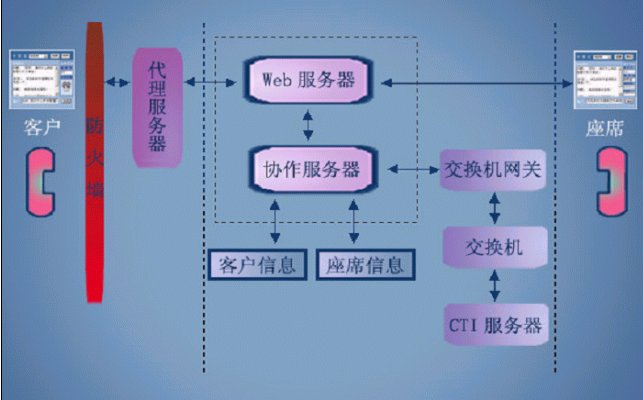 給基于交換機的呼叫中心,配備Web協(xié)作服務器和客戶端、座席端軟件包,使得利用PC上網(wǎng)的客戶可以通過因特網(wǎng)呼叫交換機中的組,使得應答的座席,可以和客戶進行實時文字交談、護航瀏覽、表單共享和共享白板。