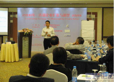 11月16日,20余位連鎖企業(yè)高管放棄周日休息,趕到上海虹橋迎賓館多功能大廳參加由國家發(fā)展和改革委員會國際合作中心與INSEAD歐洲工商管理學(xué)院聯(lián)合主辦、北京訊鳥軟件組織協(xié)辦的“動蕩時(shí)代—連鎖企業(yè)擴(kuò)張與調(diào)整”睿智沙龍活動。INSEAD歐洲工商管理學(xué)院的陳教授就當(dāng)今全球經(jīng)濟(jì)動蕩時(shí)代,連鎖企業(yè)擴(kuò)張與調(diào)整等課題與參會者進(jìn)行了深入探討。