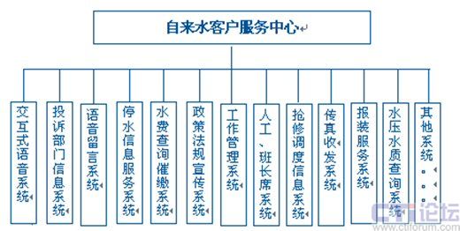 服務中心對外面向用戶服務,對內與整個自來水公司相聯(lián)系,將管理、監(jiān)控、考核、服務結為一體,它還可以把從用戶那里所獲得的各種信息、數據全部儲存在龐大的數據庫中,并能形成各類分析報表,供領導做分析和決策之用。