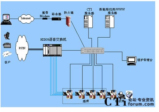 提供中國一號(hào)、七號(hào)信令、模擬、T1、IP等多種信令接入方式,具有呼入、呼出功能,負(fù)責(zé)向用戶播放服務(wù)用語、語音通知、呼叫引導(dǎo)用語、合成語音等,并具有錄音、監(jiān)聽、發(fā)送傳真、接收傳真等功能,處理接入電話與人工坐席的連接、來話轉(zhuǎn)移、保留、坐席呼出等功能,用戶與人工坐席的通話過程可實(shí)現(xiàn)全程錄音。在市場眾多品牌的交換機(jī)中,本系統(tǒng)選用的HXD09語音交換機(jī)具有先進(jìn)的技術(shù)特點(diǎn)、極高的性價(jià)比,滿足了在本系統(tǒng)構(gòu)建的需求。其主要優(yōu)點(diǎn)是: