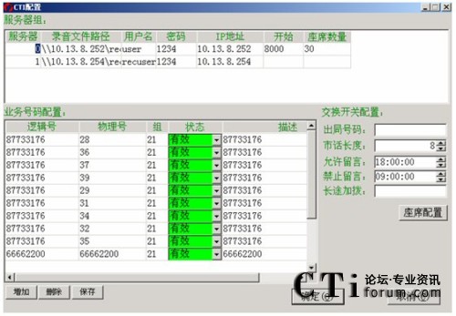點擊新增來設(shè)置集團電話,并點擊保存來保存集團電話號,集團電話的呼入不算進線。要修改某集團電話號,選定電話那一欄的對應(yīng)電話號,直接修改就可以了。