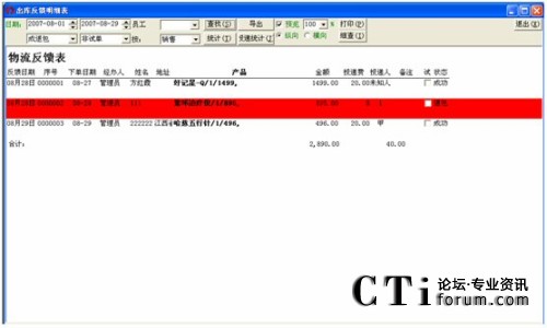設(shè)定好相應(yīng)的時間,先點擊統(tǒng)計,再點擊查找即可顯示各個區(qū)域的總進線、總訂單、總訂貨數(shù)及總金額。