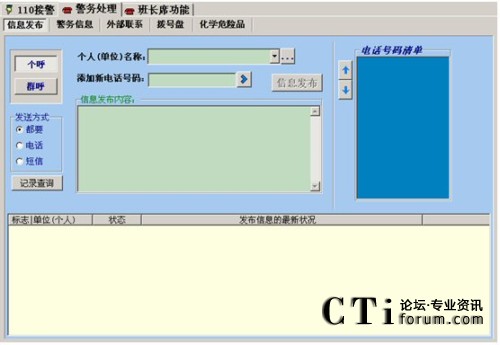 建立在“三臺合一指揮系統(tǒng)”的基礎上,在調度指令發(fā)送的同時,建立和保持同一線指揮員和作戰(zhàn)人員的通信聯(lián)系,及時準確地將變化情況向有關領導報告,確保領導在各種通信設備條件(手機、小靈通、辦公電話、家庭電話)下,在第一時間內(nèi)得到現(xiàn)場信息,極大地減輕了接警員的工作負擔。系統(tǒng)具備如下功能: